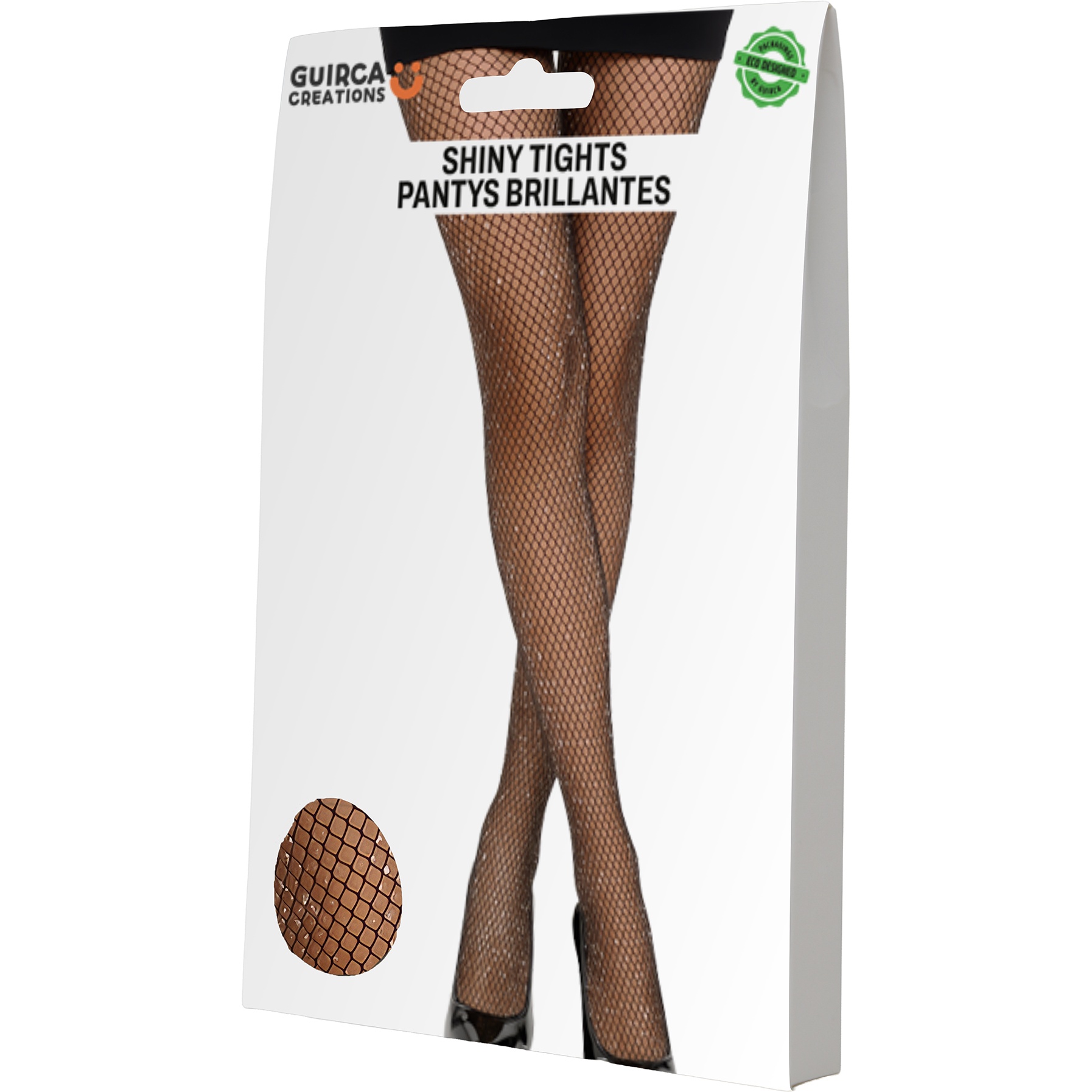 Zwarte visnetpanty met een glanzende finish die elke feestlook versterkt. Het ontwerp geeft een gedurfde en verfijnde touch, ideaal te combineren met korte jurkjes, rokken of avondkleding. De samenstelling van elastaan en polyamide zorgt voor rek en een flatterende pasvorm. Een veelzijdig accessoire voor speciale gelegenheden en avondjes uit.