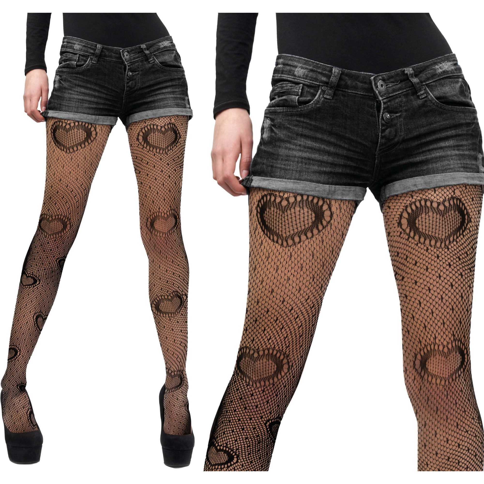 Zwarte netpanty's met hartjespatroon, ontworpen om elke look een vrouwelijke en gedurfde touch te geven. Het netdesign met hartjes creëert een romantische en karaktervolle uitstraling, perfect voor een avondje uit of speciale gelegenheden. De rekbare stof sluit aan op de contouren van het been voor een flatterende, aansluitende pasvorm. Ideaal te combineren met rokken, shorts of jurken om moderne en sensuele outfits compleet te maken.