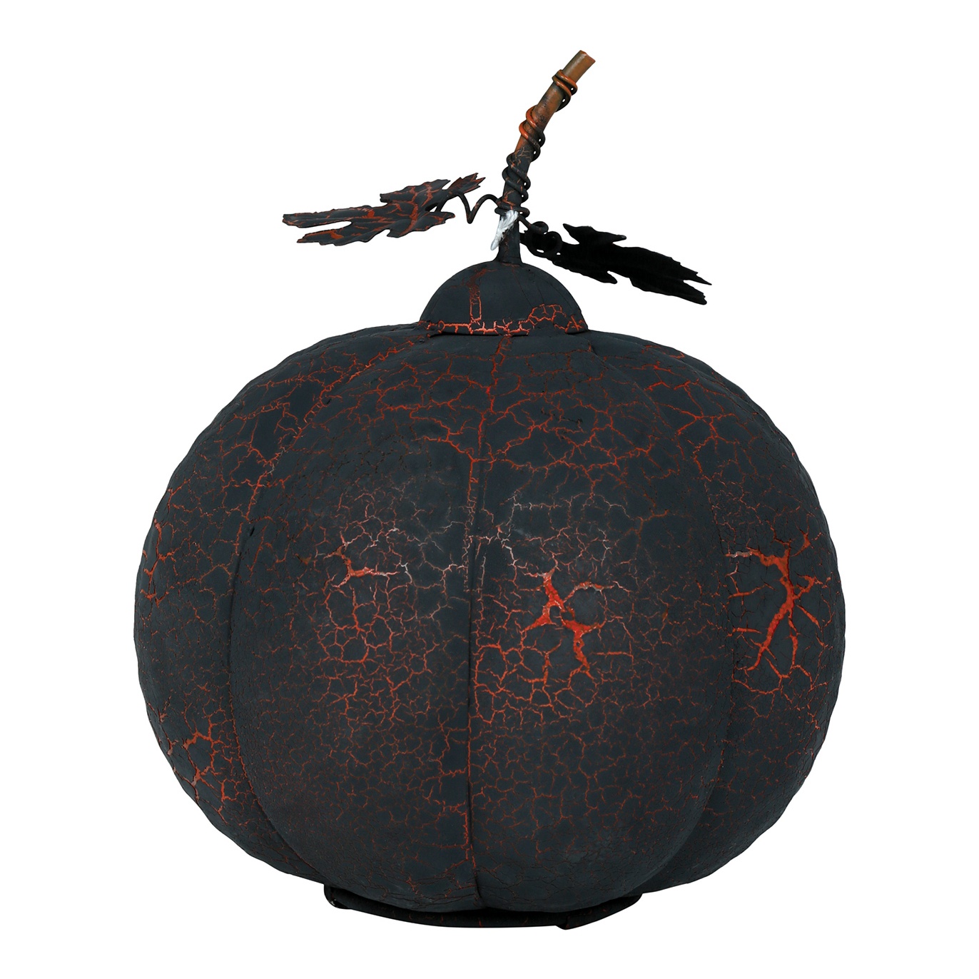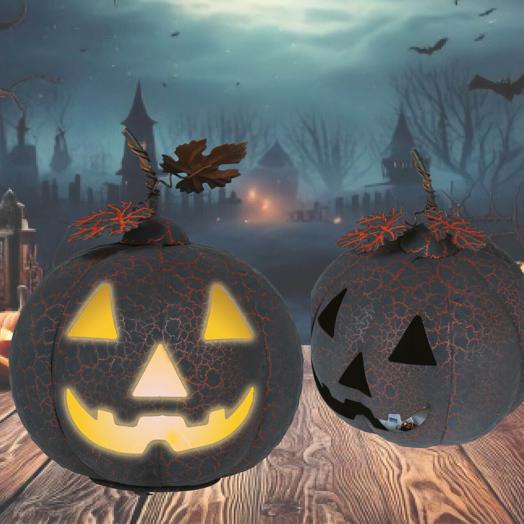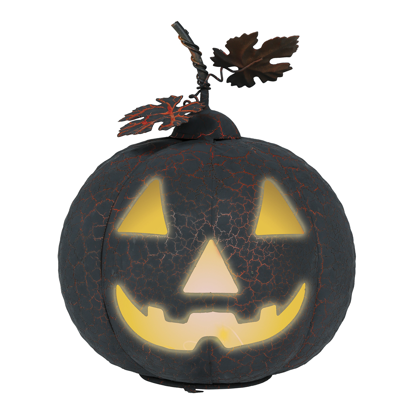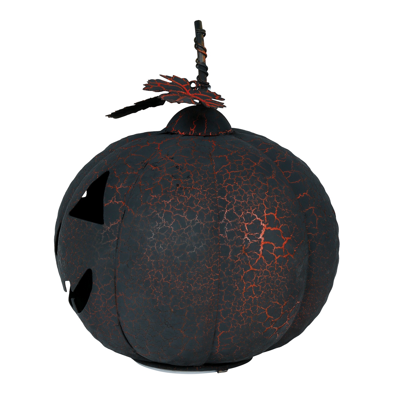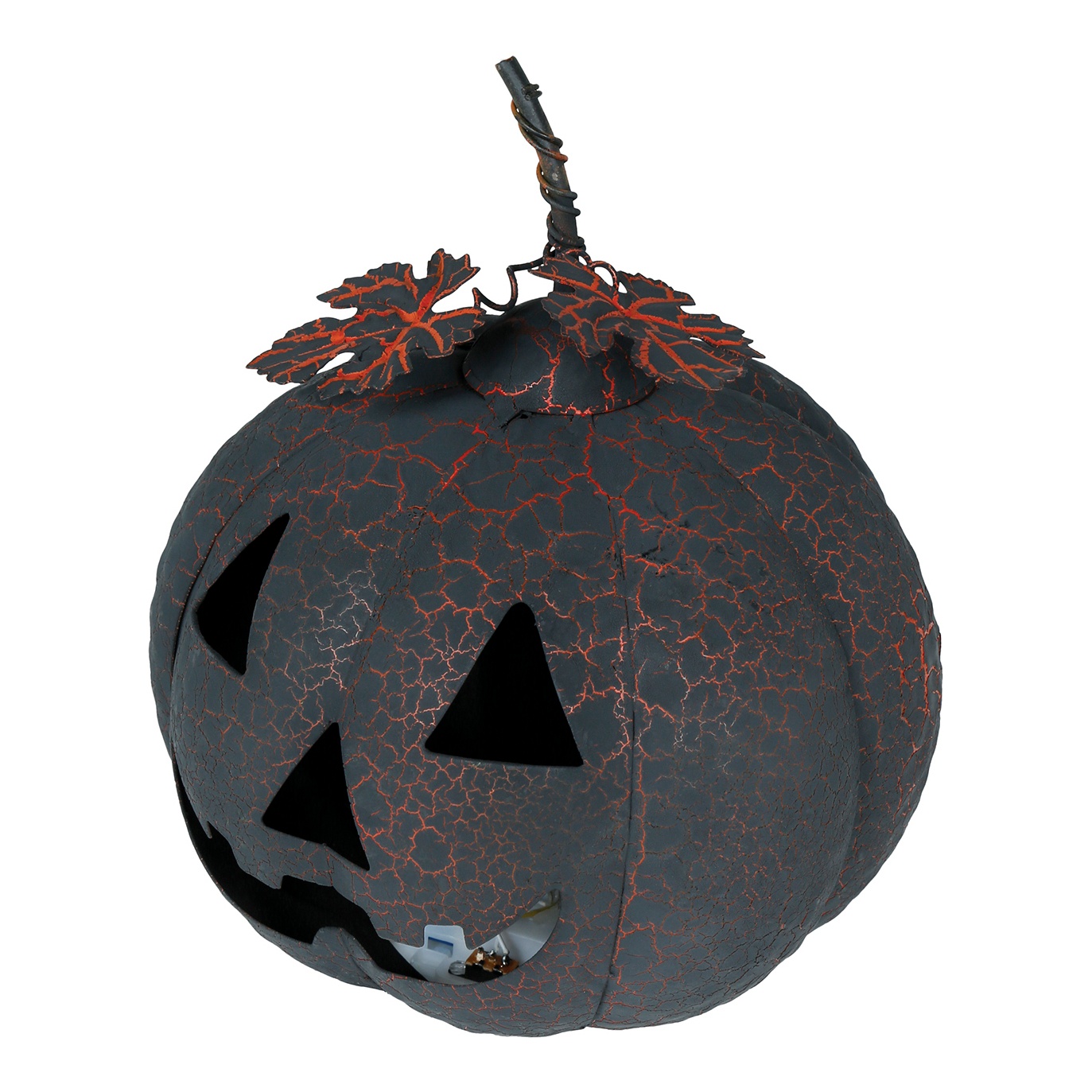 Zwarte en oranje metalen pompoen met licht van 20 cm